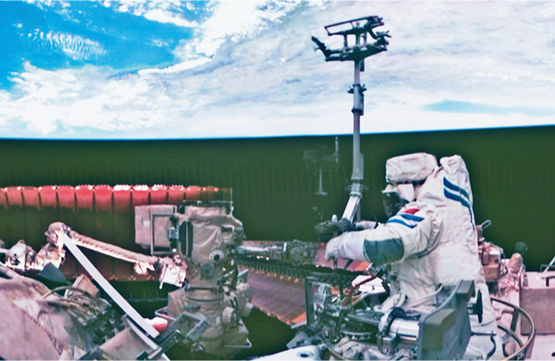 党的十八大以来,我国科技事业取得历史性成就、发生历史性变革,科技自立自强成果持续涌现。图为2024年7月3日在北京航天飞行控制中心拍摄的神舟十八号航天员李聪在空间站组合体舱外作业的画面。